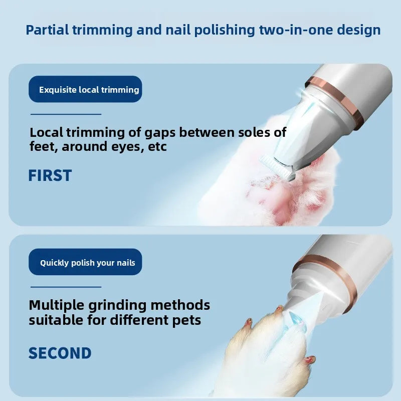 This innovative 2-in-1 pet grooming tool combines a paw trimmer and nail grinder in one compact device. With trimming on one side and grinding on the other, it allows you to easily switch between grooming tasks without changing tools, making at-home pet care faster and more efficient.