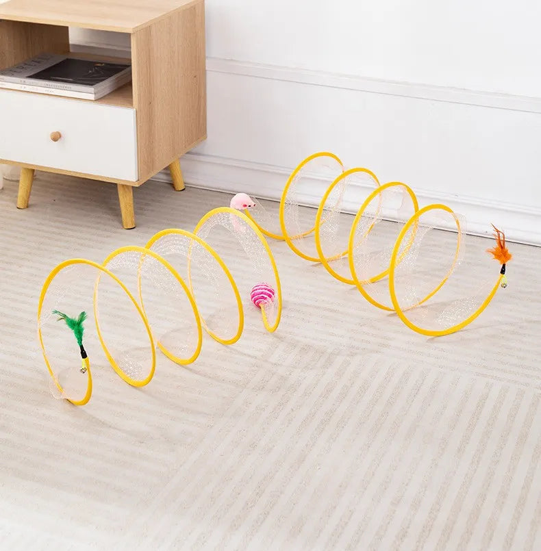 This spiral cat tunnel invites cats to explore, hide, and play with unlimited fun. The winding design mimics real-world pathways, stimulating natural instincts like stalking and chasing, perfect for energetic play sessions.