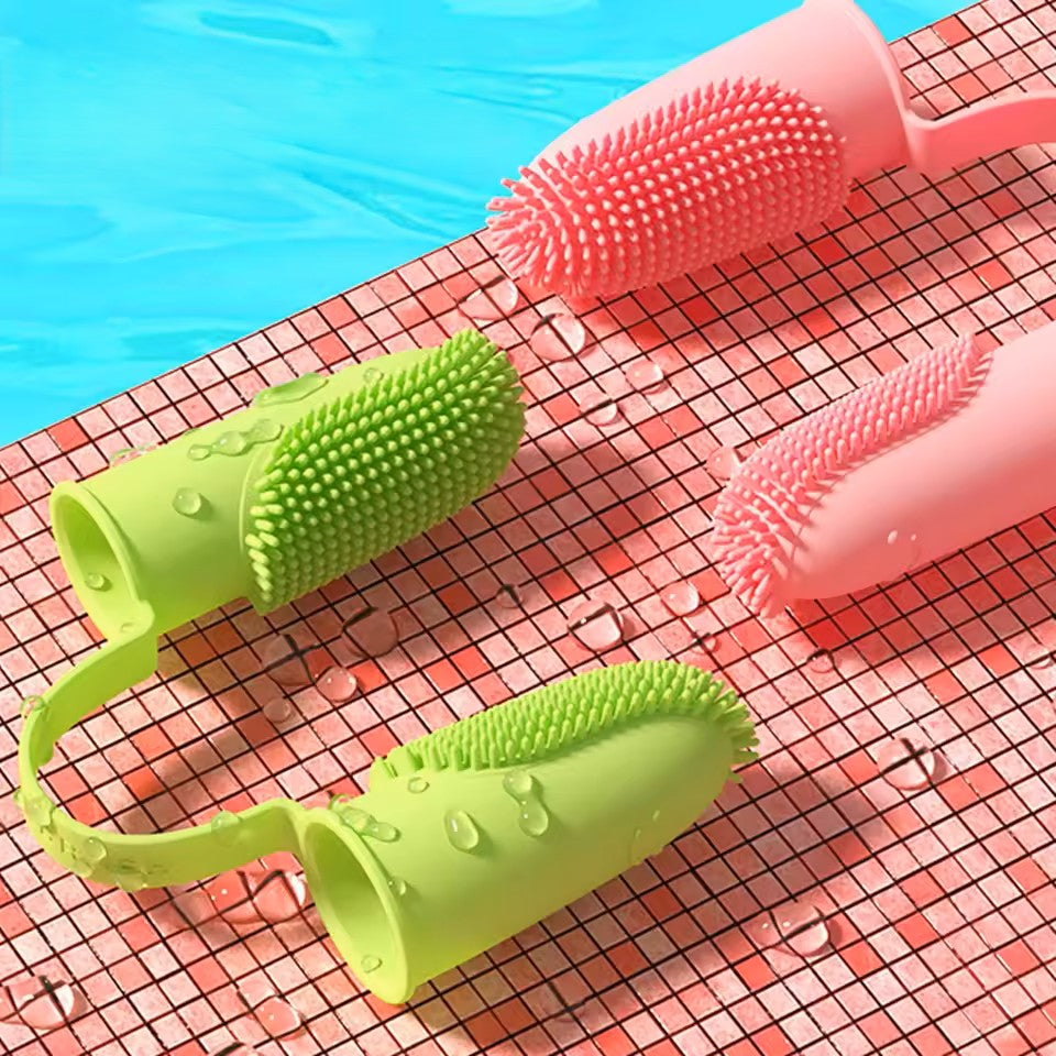 This double finger pet toothbrush is designed to provide a comfortable, controlled, and effective oral care experience for pets. Featuring a finger sleeve design, it allows pet owners to brush with greater precision while maintaining a natural grip. Made from soft yet durable TPR material, the bristles are gentle on gums while firm enough to remove plaque, stains, and buildup for improved dental hygiene. Suitable for both cats and dogs of all sizes, this toothbrush supports regular oral care routines, helping reduce bad breath and promote healthier teeth and gums.