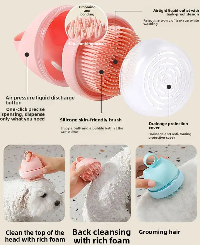This silicone shampoo brush features a built-in large-capacity reservoir that holds enough shampoo to complete a full wash without frequent refills. The integrated dispensing design ensures an even distribution of shampoo while brushing, improving efficiency and saving time during grooming or bathing. Ideal for both pets and personal use, it allows for a smoother, more controlled washing experience from start to finish.