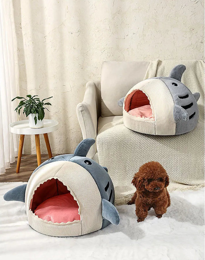 This shark-shaped pet bed is designed to provide exceptional warmth and comfort during colder months, featuring a cozy enclosed structure that helps retain heat. The cave-style design creates a secure and calming environment, offering pets a sense of safety that can help reduce anxiety and promote restful sleep. Crafted from ultra-soft, non-shedding fabric, the bed is gentle on your pet’s skin and fur while maintaining long-lasting comfort. Its unique shark-inspired design adds a playful yet stylish touch, making it both a functional pet bed and a charming addition to your home décor.
